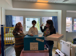ברוח הבחירות ה-24 לכנסת ישראל, וכחלק מהנושא הנלמד בימים אלו בבית הספר, ילדי דנה הצביעו בקלפי נייד (ושמור היטב!) שעבר בין מחלקות בית החולים לילדים, ובחרו בציוד הרפואי שהתחפש הכי יפה/ מקורי/ מגניב לדעתם.